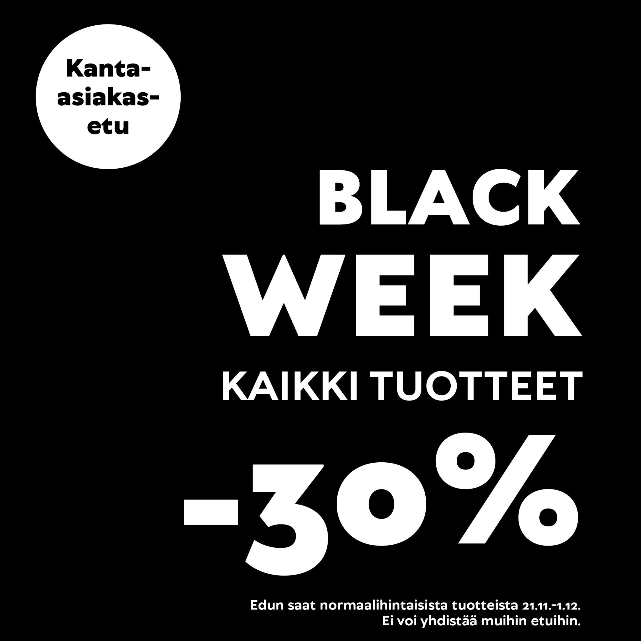 Med anledning av Black Week får våra stamkunder –30 % på hela det ordinarie sortimentet.